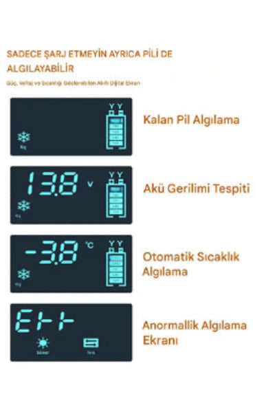 - Mikrobilgisayar ortam sıcaklığını otomatik olarak algılar ve mevsime göre pil için uygun şarj voltajını verir. Kışın tam şarj ,yazın aşırı şarj, pil ömrünü uzatır